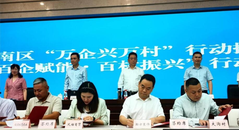 2023年6月2日上午,巴南區(qū)召開了萬企興萬村行動推進會暨百企賦能、百村振興行動工作會,巴南區(qū)委常委、統(tǒng)戰(zhàn)部部長徐江海出席會議并講話。重慶瀚方裝飾工程有限公司積極響應(yīng)號召,與圣燈山鎮(zhèn)大溝村進行結(jié)對共建,公司總經(jīng)理譚小平先生與大溝村支部書記文鋼同志現(xiàn)場簽訂共建協(xié)議。作為巴南區(qū)建筑業(yè)商會副會長的譚小平先生,代表商會舉牌認養(yǎng)兔、豬、雞鴨等畜牧以及認領(lǐng)稻田、蔬菜等農(nóng)作物,用實際行動支持萬企興萬村的推進。中